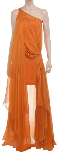 As seen in our Spring 2012 ad campaign Ethereal romantic and dramatic its all that an evening dress should be This floor length dress gets its soft floaty movement from delicately draped and shirred crinkled silk chiffon The oneshoulder silhouette along with the abundant all over textures creates a look fit for a Grecian Goddess The seamless and stretchy slip underneath nbsp dotted with an intricate pattern that creates unique dimension and hugs all curves holding everything in place Fits true to size Leon Max Collection